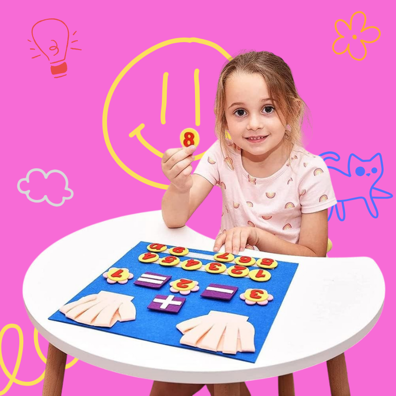 Idéal pour les 3-6 ans, ce tableau en feutrine permet de découvrir les chiffres et les premières additions tout en développant la logique et la coordination.